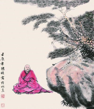写意人物画的色彩,其实是被很多人忽视的。特别是在写意人物创作中,很多画家只是简单抹上一两笔赭石就草草了事。实际上,在优秀的写意人物画作品中,色彩的运用始终是微妙而丰富的,但这也是最难的一点。我在画罗汉人物时,也曾习惯于将色彩的处理简单化,人物不外乎赭石、朱砂、大红,松石、远山不外乎石绿,石青、赭石,且变化很少。但在经历一段时间的研究之后,我意识到这个弊端。所谓“色不碍墨,墨不碍色”,有时候就变成“色是色,墨是墨”,两者之间仿佛没有什么关系。这显然是有问题的。因此,在最近的人物画创作中,我力求色彩与墨的浓淡变化形成互动关系,从而给予色彩更多的表现性。跟笔墨一样,装裱机色彩的运用也需在一个“度”的把握之下,过浓则抢了墨的风头,过淡又会被墨掩盖了。所以在写意人物画中,“中庸”之道始终是不可逾越的原则。
