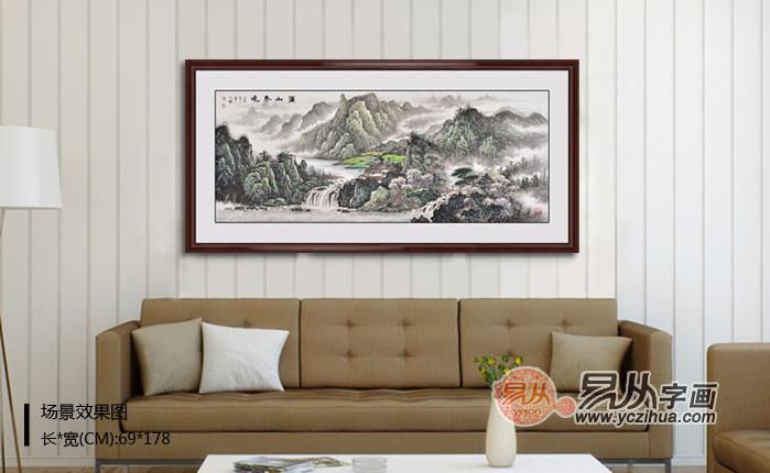 客厅装饰画挂什么好?青山绿水国画山水画。作品汲取"南派"山水之秀润华滋。温文儒雅、注重笔情墨韵,墨色清新淡雅。全景式构图,力求表现雄浑、壮阔之美。作品即继承了传统山水的精髓,又赋予了较强的时代感,给人一种大气幽寂、造境苍茫旷远、气韵生动、厚重华兹、雄秀兼收、形神具备之美感 。