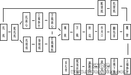 书画装裱的品式虽然很多,但其基本工艺过程大同小异。概括而言,有三个较大的书画装裱工序,即托、裱、装。